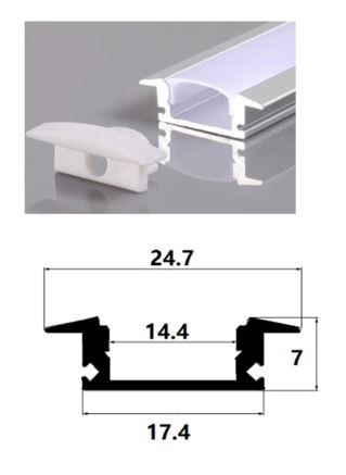 – 2m aluminium groove/recessed profile for 1 LED strip